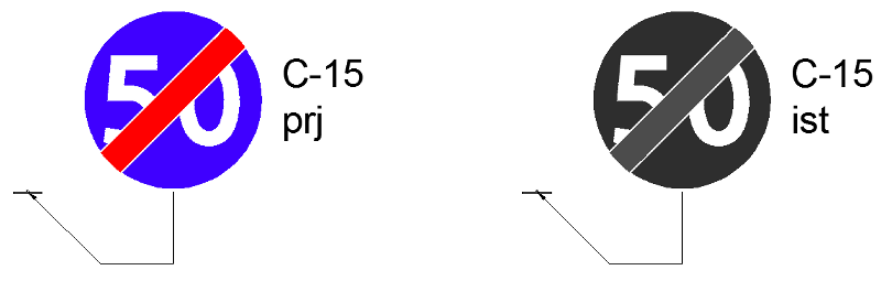 Znak C-15 „koniec minimalnej prędkości” stosuje się dla zaznaczenia miejsca, w którym nakazy jazdy z minimalną prędkością wskazaną znakiem C-14 przestaje obowiązywać.
